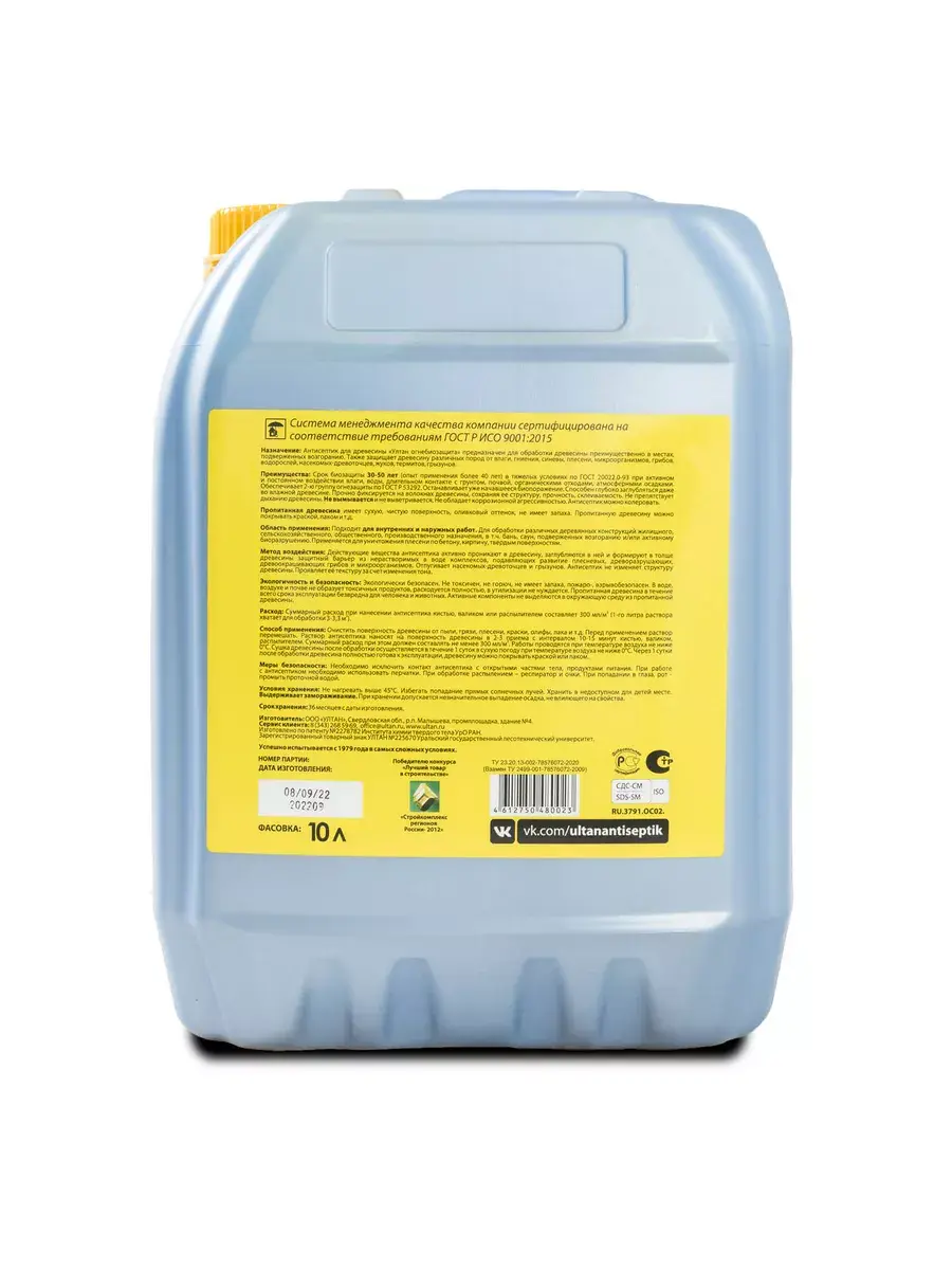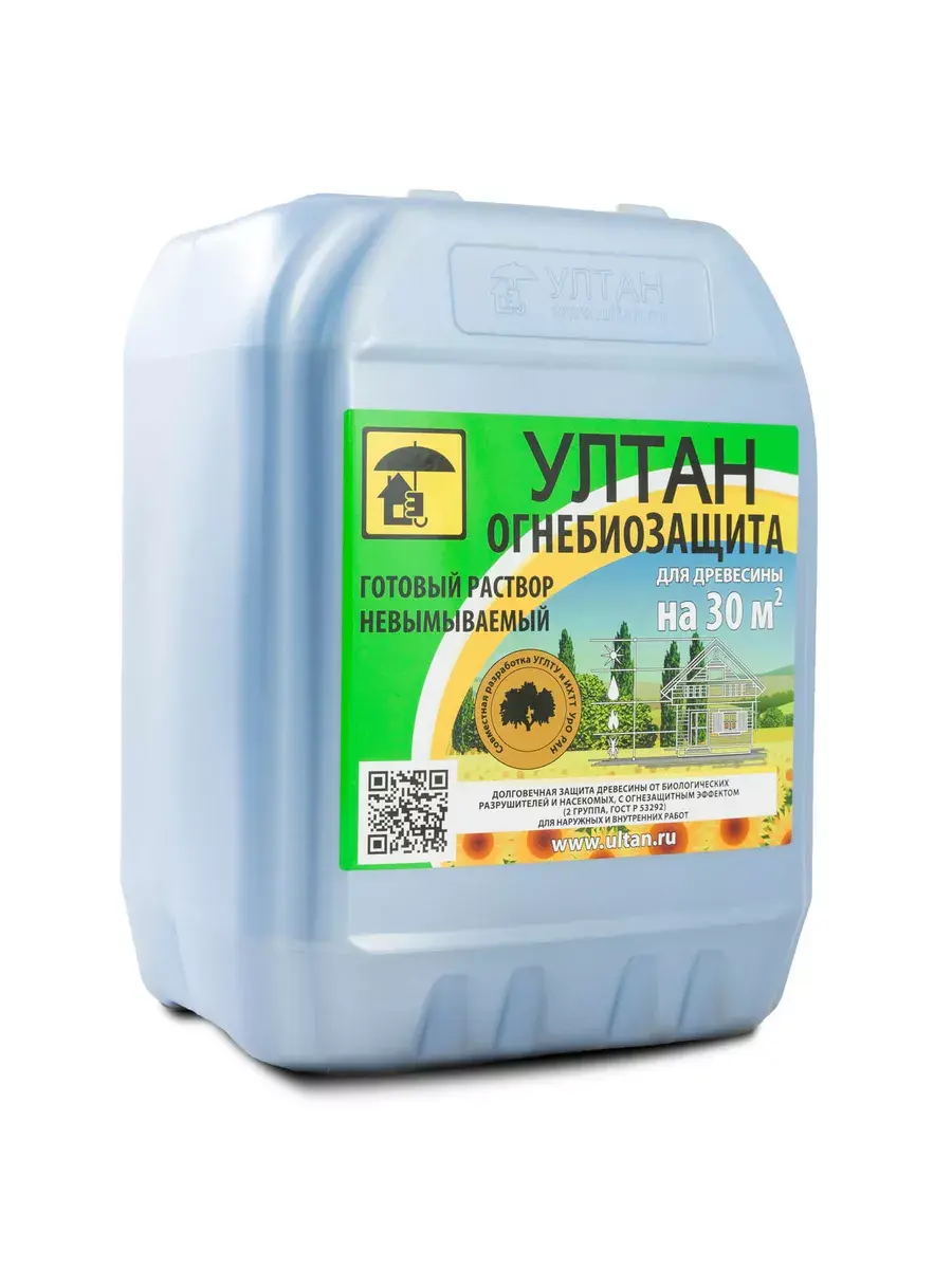 Раствор невымываемый Ултан огнебиозащита», канистра 10 л, 30 кв. м.