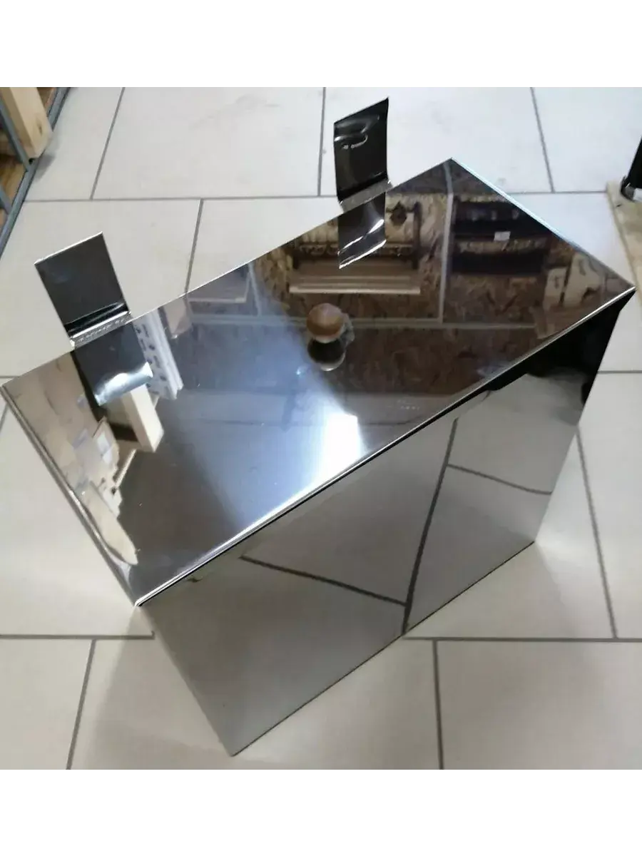Бак для воды в баню навесной из нержавеющей стали. Нержавеющая сталь AISI 430 является магнитной с умеренной стойкостью к коррозии.
