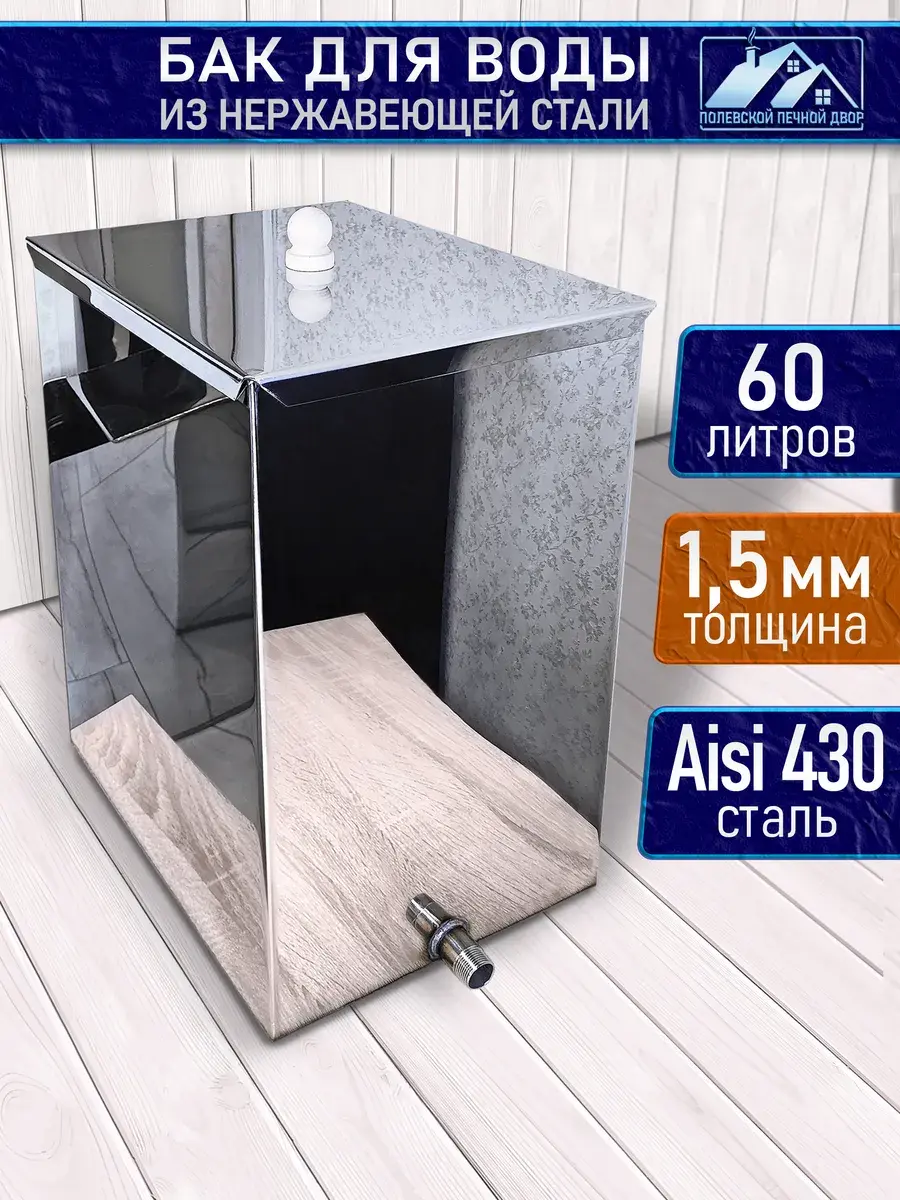 Бак для воды в баню из нержавеющей стали для горячей и холодной воды. Нержавеющая сталь AISI 430 является магнитной с умеренной стойкостью к коррозии.