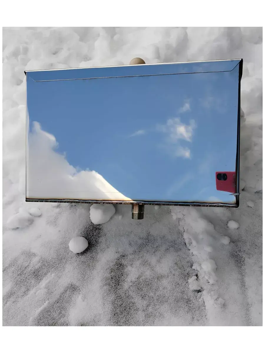 Бак расширительный открытого типа навесной из нержавеющей стали. Нержавеющая сталь AISI 430 является магнитной с умеренной стойкостью к коррозии, если у вас агрессивная по составу вода, могут появиться следы ржавчины. Обычно швы просто темнеют. Если есть подозрение на агрессивный состав воды, лучше перестраховаться и выбрать бак из нержавейки марки Aisi 201, а ещё лучше Aisi 304.