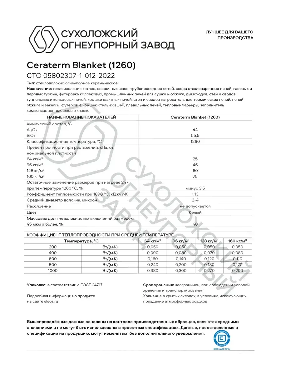 Термостойкое керамическое волокно толщиной 12 мм выдерживает температуру до 1260 градусов. Не горит даже под огнём газовой горелки, экологически чистое, не выделяет вредных веществ.
