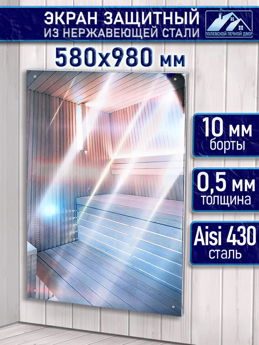 Собственное производство. Отражающий экран для печей, бань, каминов и саун - это высококачественное изделие из нержавеющей стали, которое обеспечивает надежную защиту от жара и искр. Толщина 0,5 мм