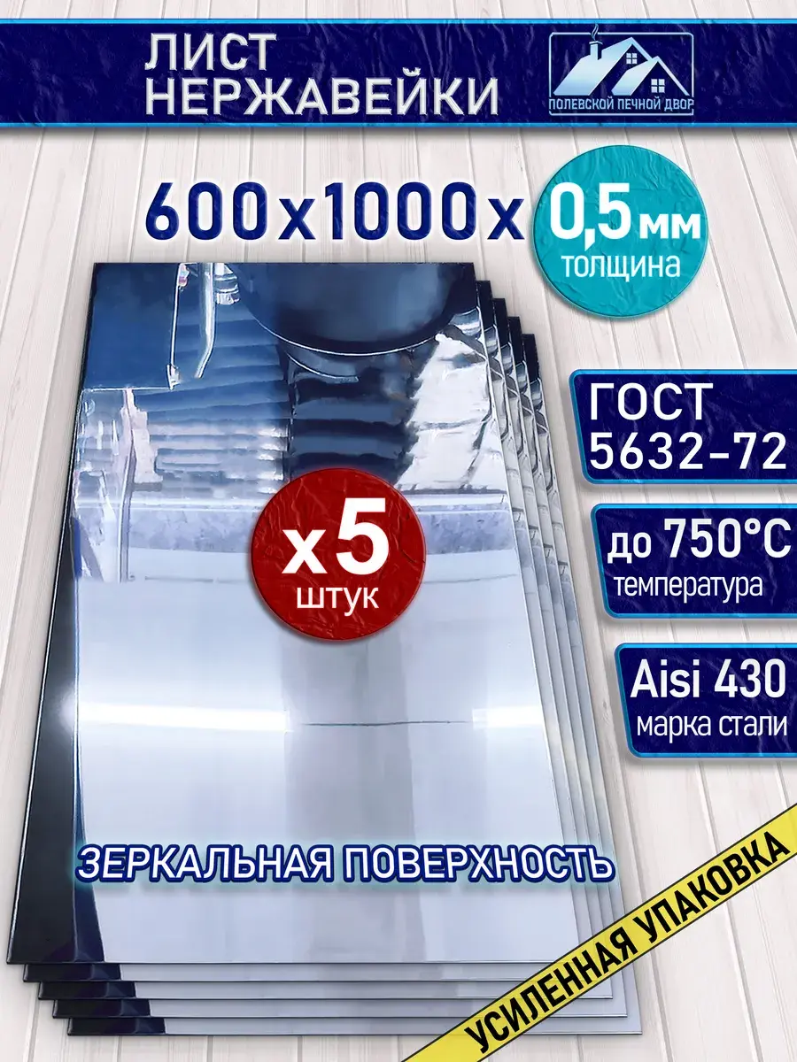 Нержавеющая сталь листовая 0.5мм 1000х600 мм. 5 листов