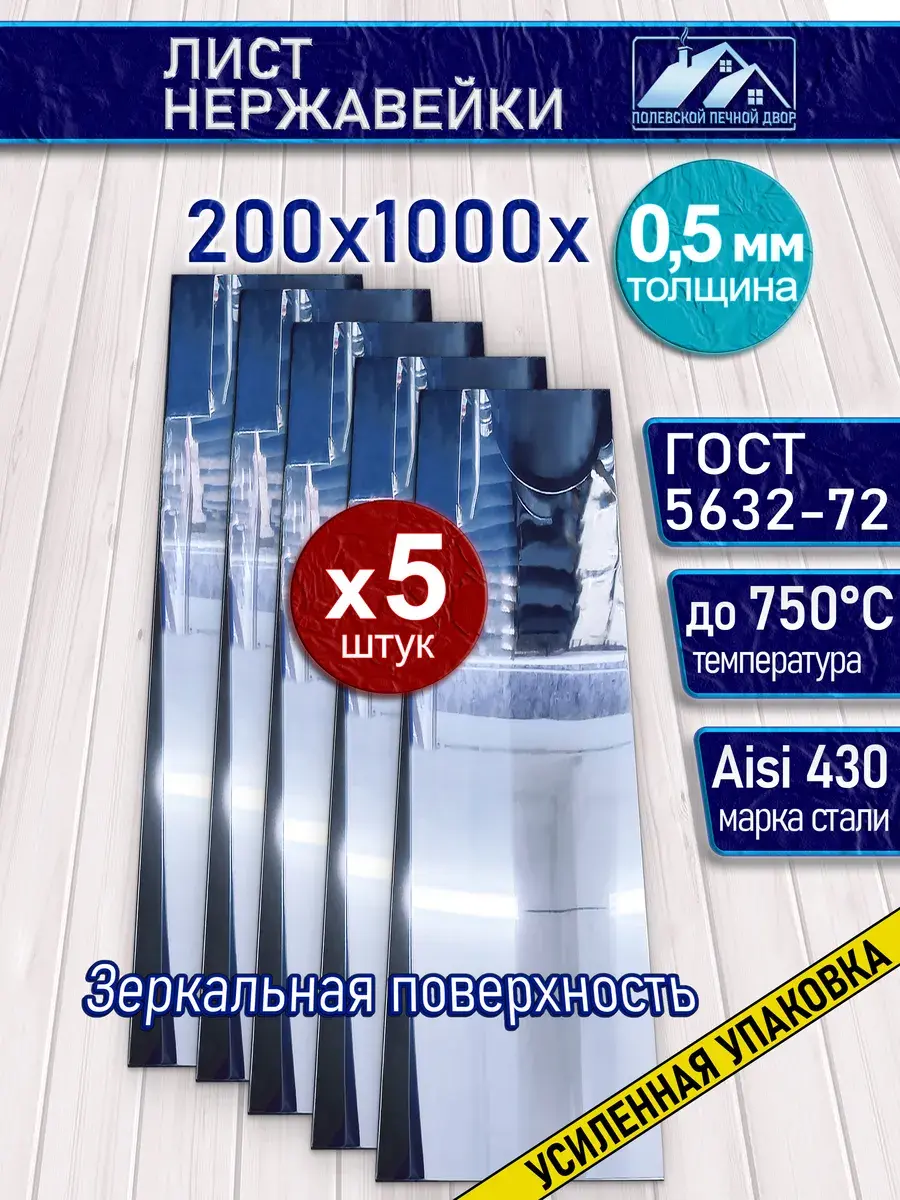 Нержавеющая сталь листовая 0.5мм 1000х200 мм. 5 штук.