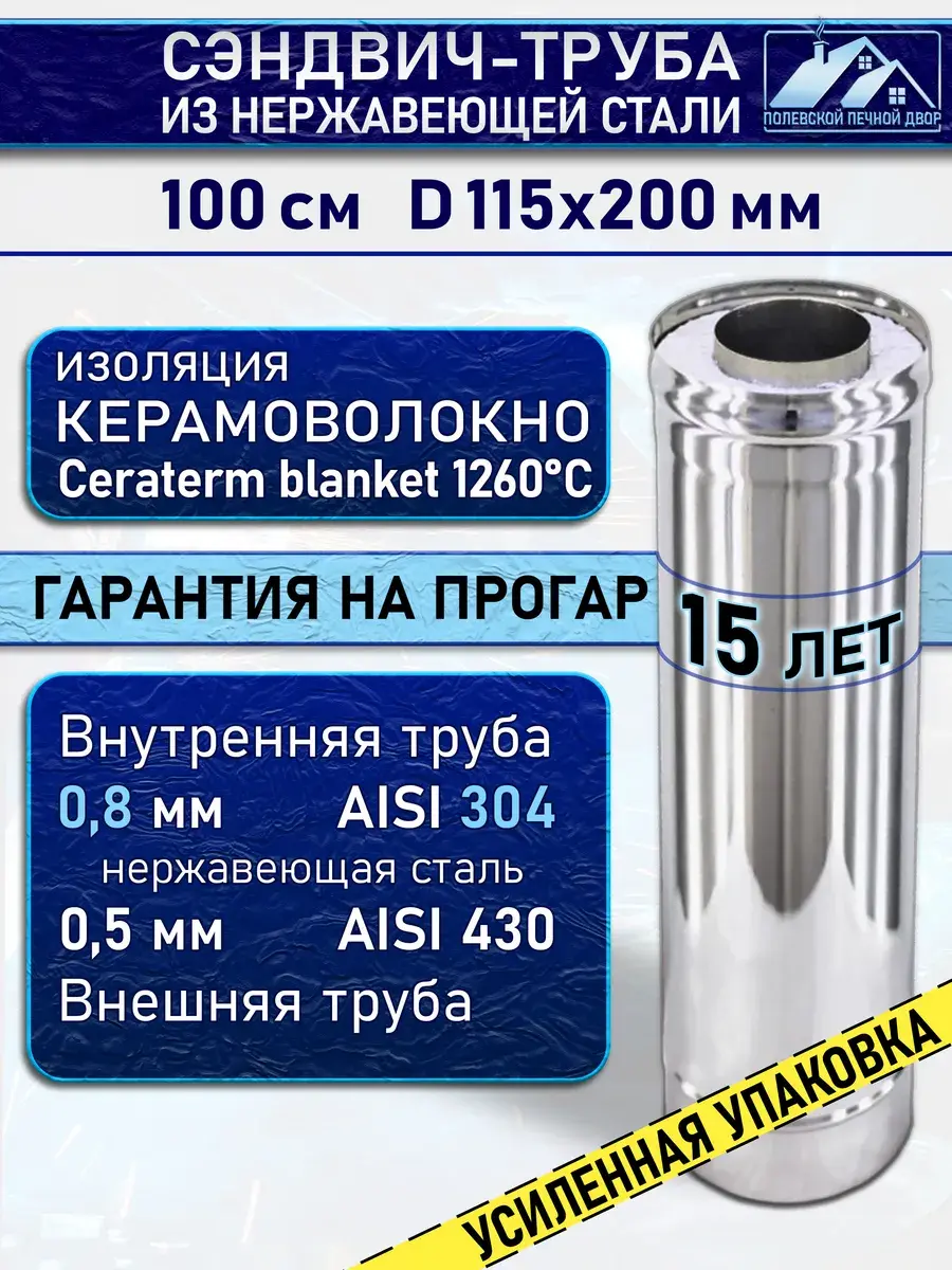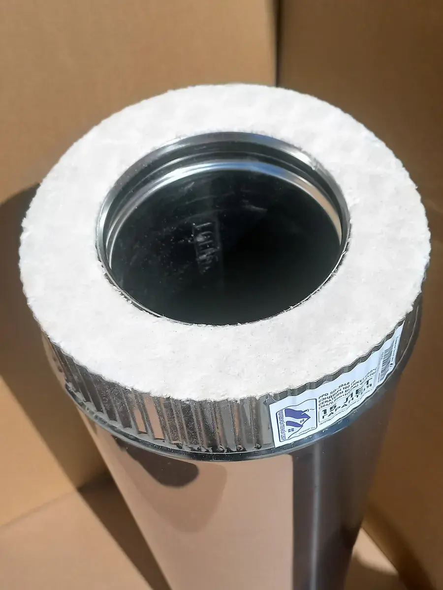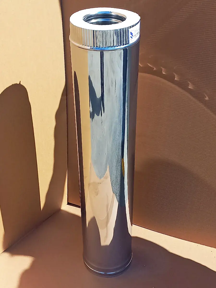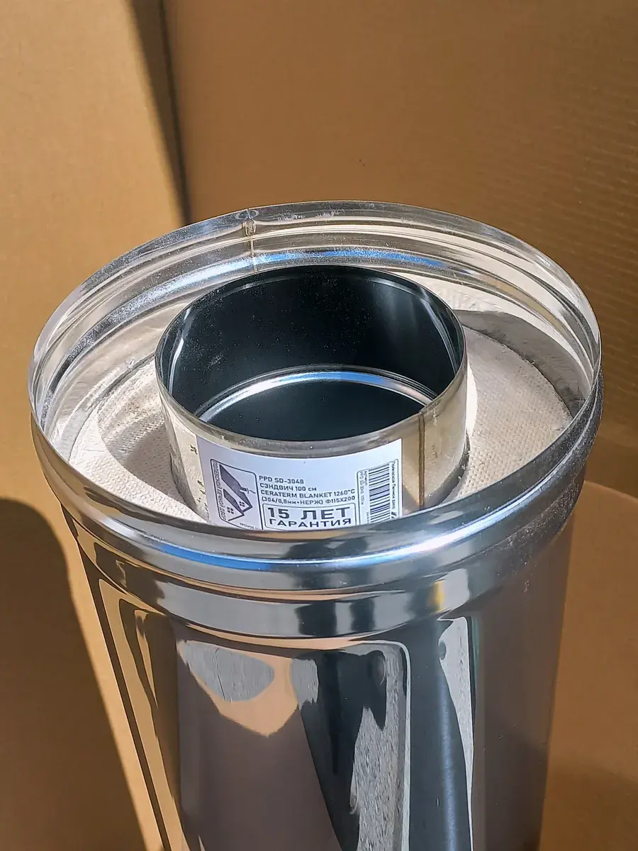 Внутренняя стенка изготовлена из пищевой, жаропрочной, коррозионностойкой нержавеющей стали AISI 304 толщиной 0,8 мм. Данная сталь не прогорит в дымоходе минимум 15 лет.
