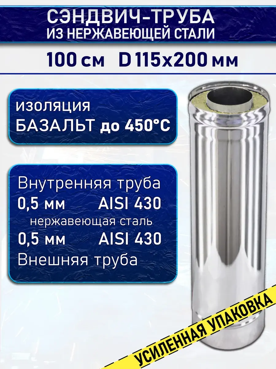 Внутренняя и внешняя стенки изготовлены из нержавеющей стали AISI 430 толщиной 0,5 мм.