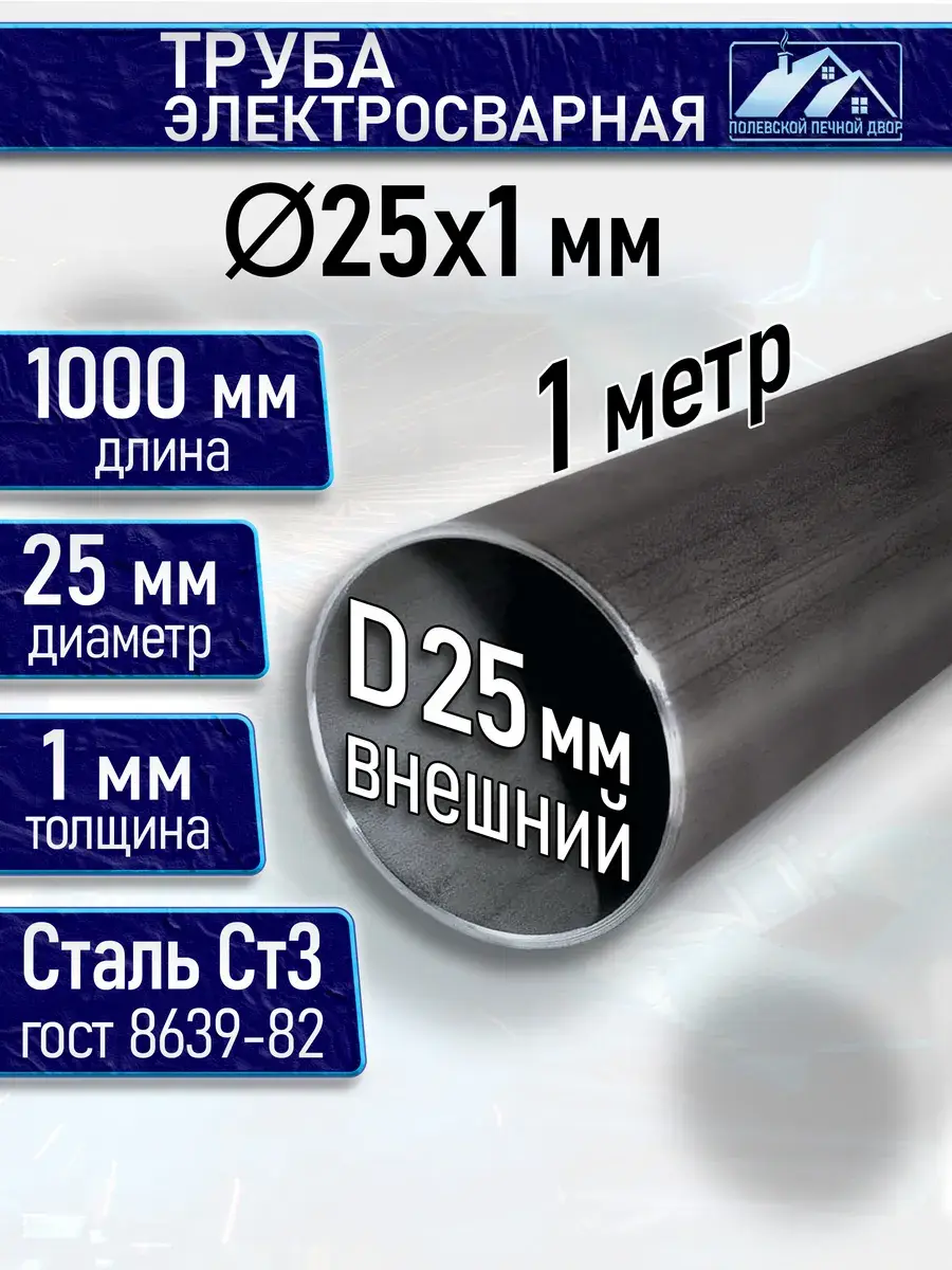 Труба круглая – это металлические трубы с круглым сечением, которые широко используются для водоснабжения, газоснабжения и теплоснабжения. Толщина стенок трубы 1 мм, наружный диаметр 25, внутренний 23 мм. Вес трубы 590 грамм на 1 метр.
